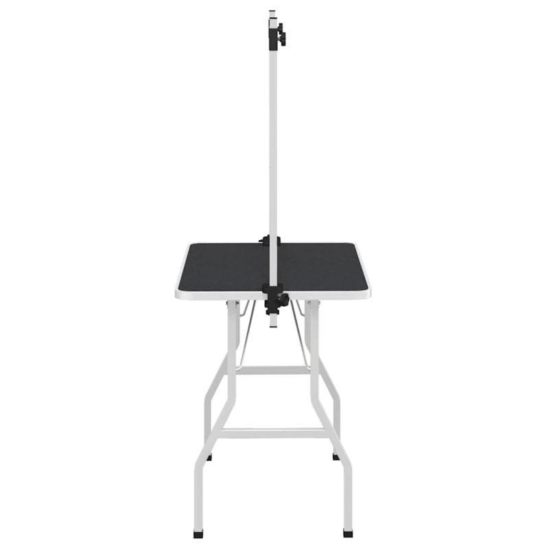 Тази маса за подстригване на домашни любимци е перфектна за домашни условия, но също така е лесно преносима. Отличава се с нехлъзгав плот и прахово боядисана метална рамка с регулируема ръка и примка. Професионалната грууминг маса ще донесе комфорт при използване. Плотът е с гумено покритие, за да предпази животните от подхлъзване, докато ги подстригвате или къпете. Също така здравата регулируема ръка се разглобява, когато не използвате масата, за по-лесно съхранение и транспорт. Регулируемата примка спомага за безопасността на домашните любимци и се отличава с плъзгаща се закопчалка. Доставката включва 1 х маса за подстригване на домашни любимци, 1 х фиксираща регулируема ръка и 2 х примки.