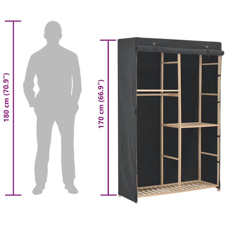 Нашият функционален гардероб не само представлява перфектно решение за съхранение на вашите дрехи, обувки или аксесоари. Освен това той ще бъде и уникално декоративно допълнение към вашия дом със своя семпъл и приятен дизайн. Трите рафта са идеални за съхранение на дрехи, кърпи или обувки. Добавена е релса за окачване на блузи, ризи, панталони или якета. В допълнение дървената рамка осигурява стабилност. Сглобяването е лесно.