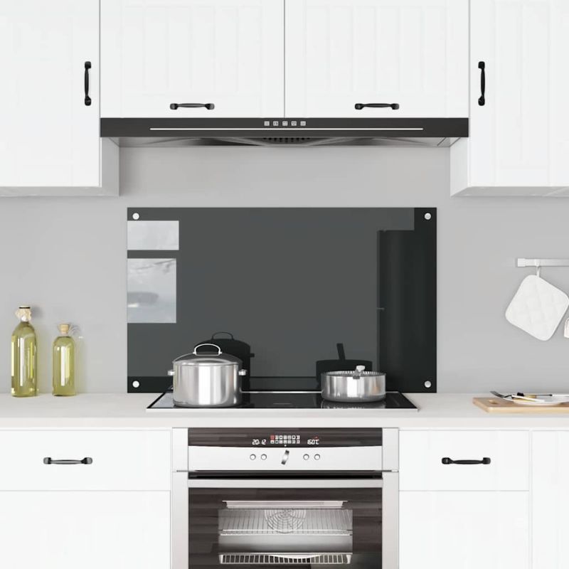 Кухненски гръб, черен, 100x60 см, закалено стъкло