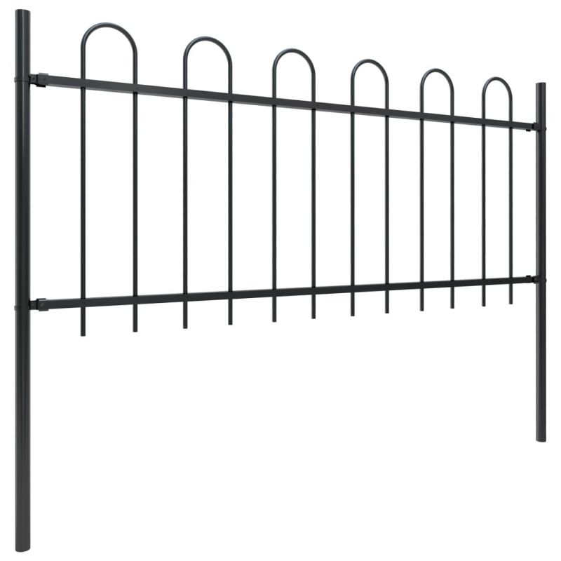 Градинска ограда с обръч връх, стомана, 1603,5x80 см, черна