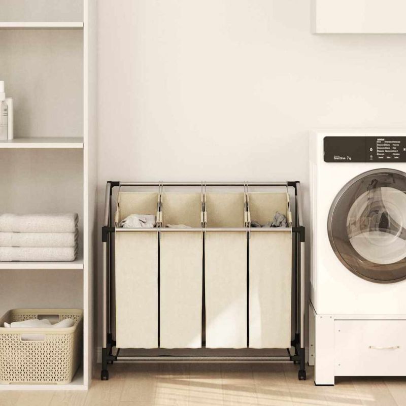 Кош за сортиране на пране с 4 торби, кремав, стомана