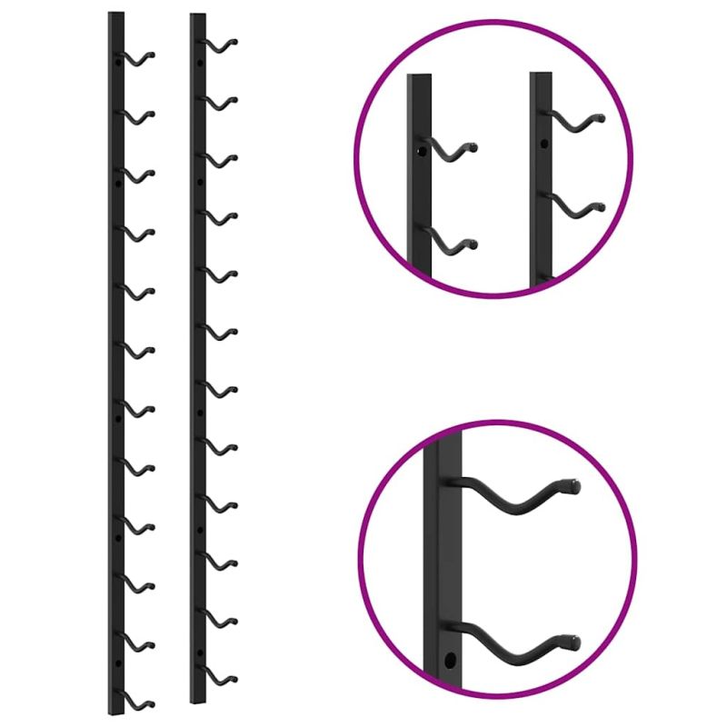 Стойки за вино за 12 бутилки стенен монтаж 2 бр черни желязо