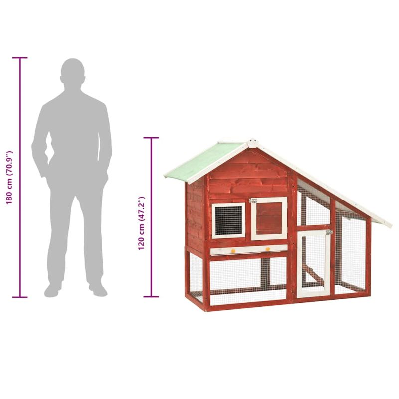Клетка за зайци, червено и бяло, 140x63x120 см, чам масив