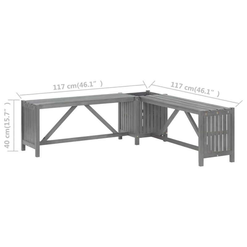 Градинска ъглова пейка с плантер, 117 cм, акация масив, сива