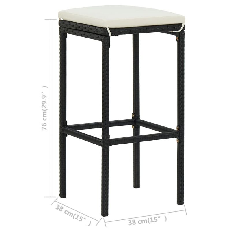 Бар табуретки с възглавници, 3 бр, черен полиратан