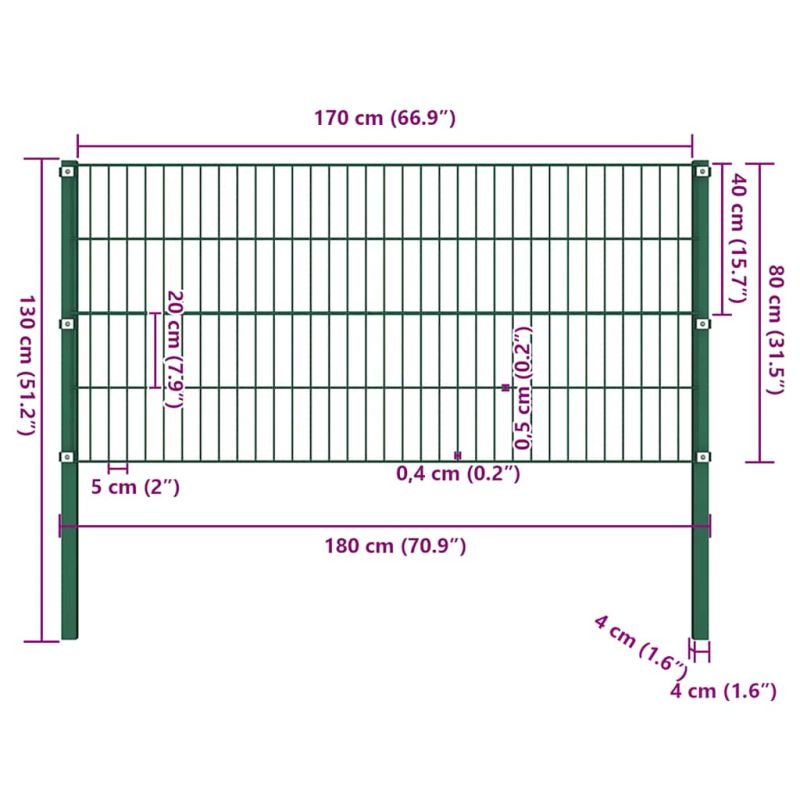 Ограден панел с железни стълбове 176,5x80 см, зелен