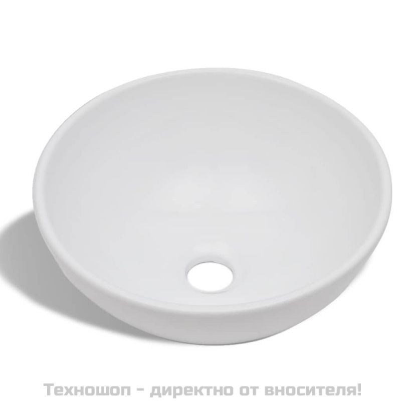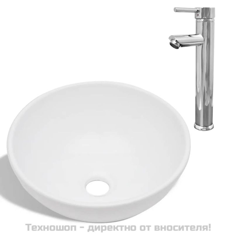 Мивка за баня със смесител, керамична, кръгла, бяла