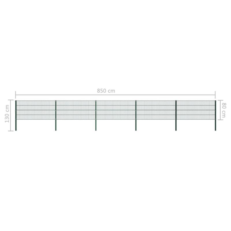 Ограден панел с железни стълбове, 867x80 см, зелен