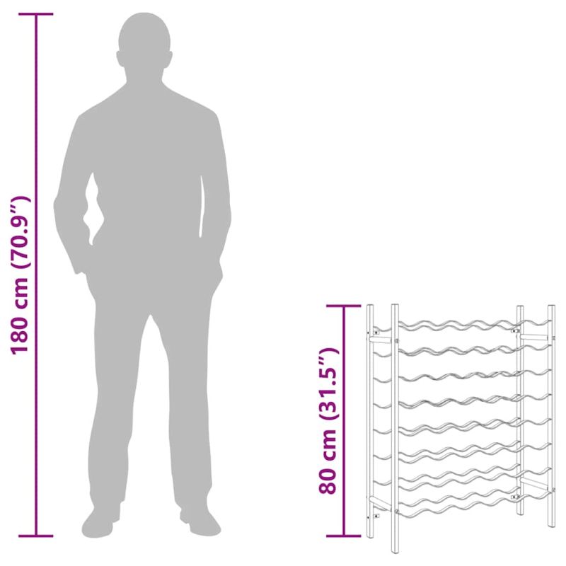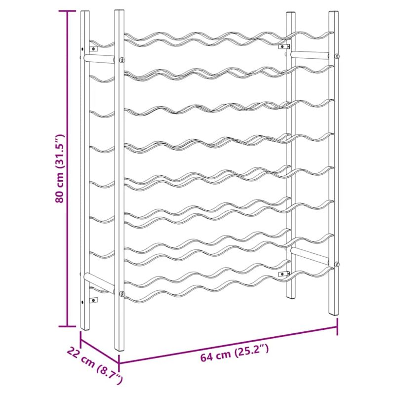 Тази стойка за вино със своя семпъл, но стилен дизайн придава нотка модерна класа към вашето жизнено пространство. Стелажът за вино побира до 48 бутилки вино. Изработен е от прахово боядисан метал, което го прави изключително издръжлив и лесен за поддръжка. Той е идеален избор за подарък за вашите приятели и познати любители на виното. В допълнение, бутилките вино могат да бъдат подредени в тази стойка за вино. Освен това се сглобява лесно. Моля, обърнете внимание, че бутилките с вино не са включени в доставката.