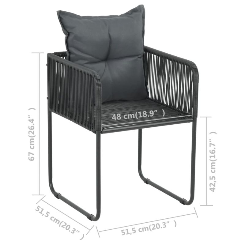 Градински трапезен комплект, 3 части, PVC ратан, черен