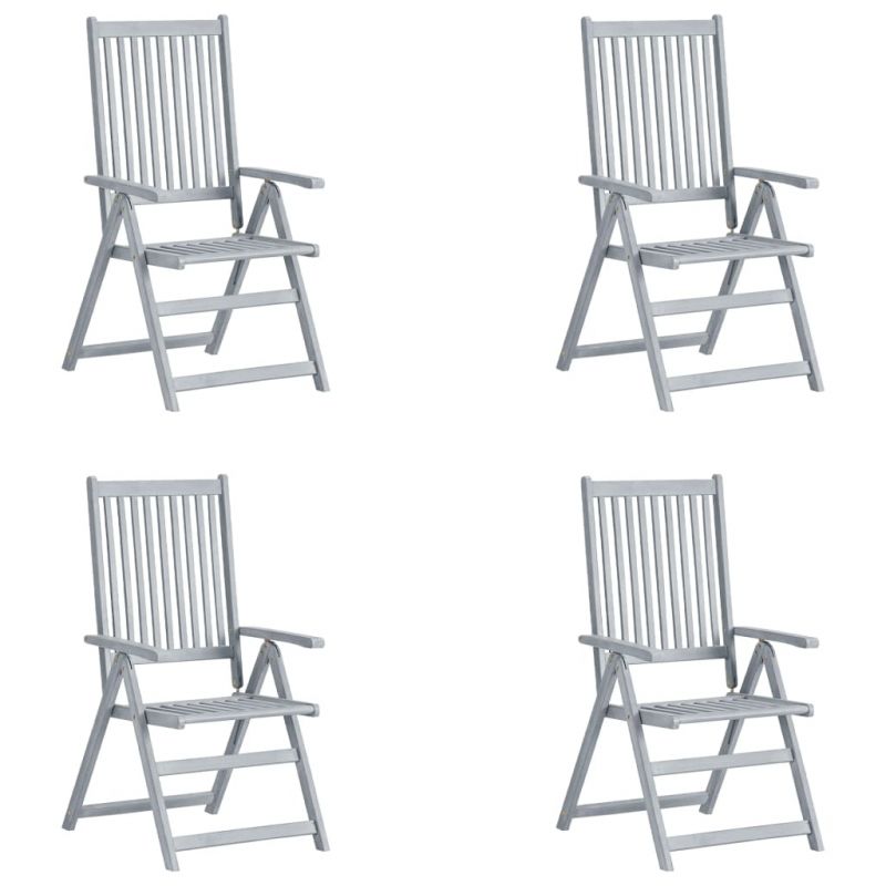 Градински накланящи се столове, 4 бр, сиви, акация масив