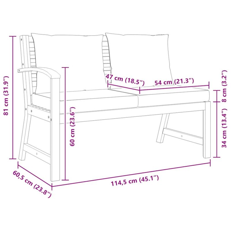 Градинска пейка 114,5 см с кремава възглавница, акация масив