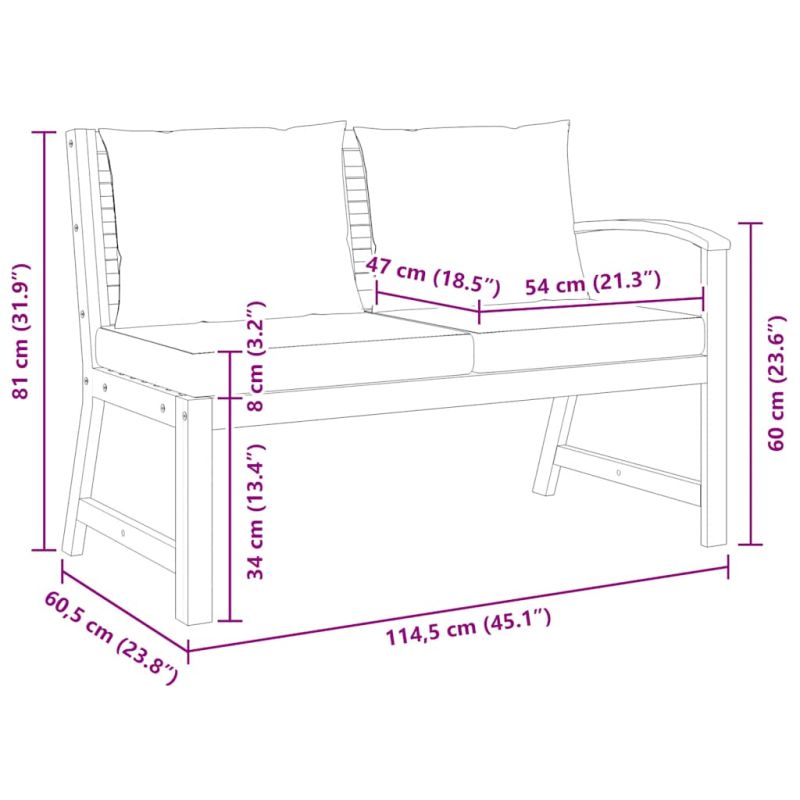 Градинска пейка 114,5 см с тъмносива възглавница, акация масив