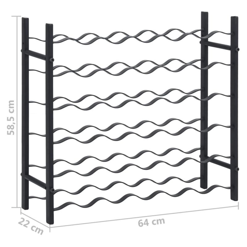 Тази стойка за вино може да се използва за съхранение и показване на вашето вино и ще бъде чудесно допълнение към вашия домашен декор. Виненият шкаф побира до 36 бутилки вино. Неговият прост и изчистен дизайн добавя нотка на индустриален чар към вашето жилищно пространство. Също така той може да бъде чудесен подарък за вашите приятели и познати – любители на виното. Изработен от здраво желязо, този стелаж за вино е изключително стабилен и издръжлив. Моля, обърнете внимание, че бутилките с вино не са включени в доставката.