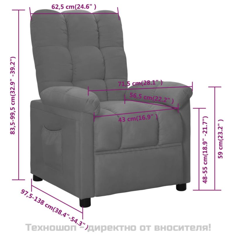 Реклайнер стол, светлосив, текстил