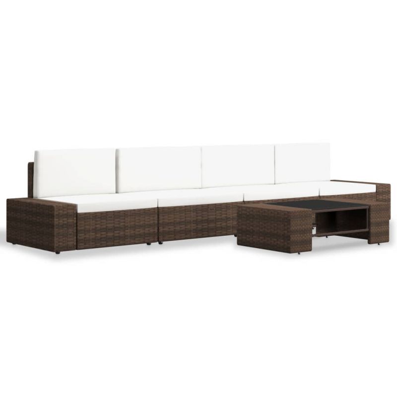 Градински комплект, 5 части, кафяв полиратан