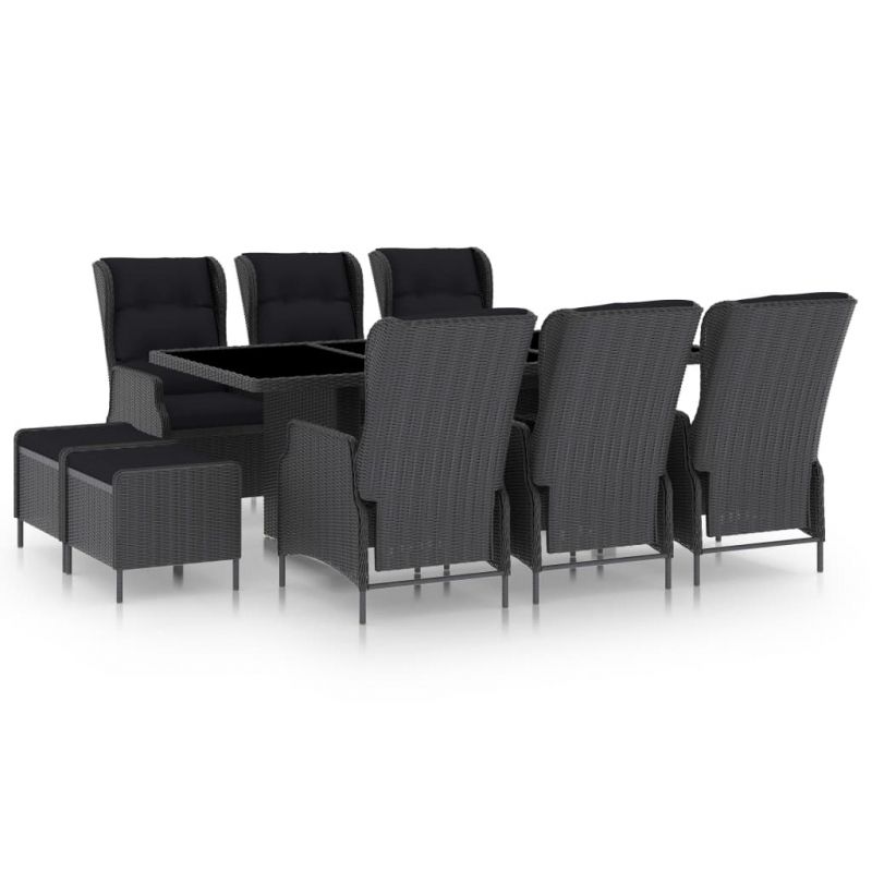 Градински комплект с възглавници, 9 части, полиратан, тъмносив