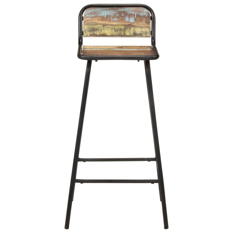 Насладете се на глътка вино, хапнете или просто се отпуснете на тези дървени бар столове с приятелите и семейството си! Тези бар табуретки са изработени от регенерирана дървесина, произведена от греди от подове или подпорни греди от стари сгради, които са били съборени и могат да се състоят от различни видове дървесина като борова дървесина, тик, бук, дъб, кедър, манго, акация и т.н. Това означава, че рециклираната дървесина запазва характеристиките на тези различни видове дървесина. Регенерираната дървесина е вече остаряла, обветрена и изсушена, така че не се свива или огъва. Този стол е изцяло ръчно изработен, а красивите дървесни шарки правят всяка мебел необикновена и малко по-различна от останалите. Стоманената рамка с прахово покритие доставя допълнителна стабилност. Тези пъб столове разполагат и с вградени подложки за крака за допълнителен комфорт при седене. Важна забележка: Цветовете и шарките могат да варират, което прави всяка мебел уникална и малко по-различна от останалите. Доставката е на случаен принцип.