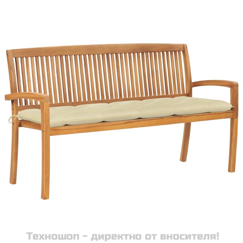 Стифираща градинска пейка с възглавница, 159 см, тик масив