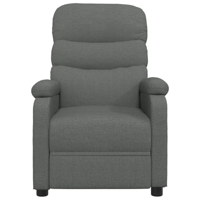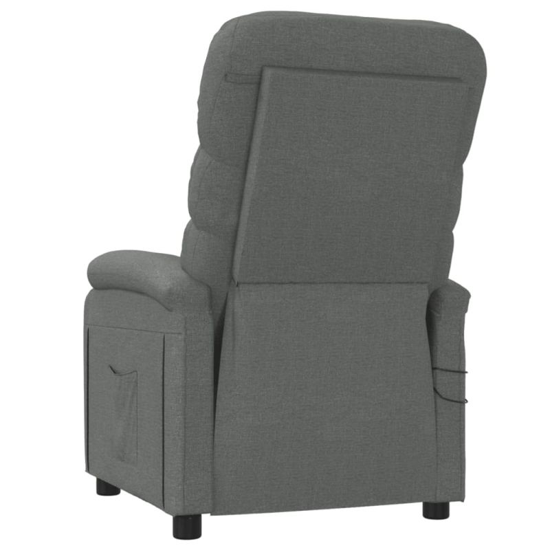 Облегнете се и се отпуснете в този изключително комфортен електрически масажен стол! Електрическа функция за накланяне: Столът с облегалка е оборудван с електрически мотор за функция за накланяне. Разполага с 3 позиции на легнало положение, така че можете лесно да регулирате облегалката и поставката за крака с включеното ръчно управление с 2 бутона според вашето удобство.Функция за вибрация: Представените 6 масажни точки ви позволяват да изпитате по-целенасочен масаж. Освен това включеното ръчно управление ви позволява да избирате различни програми за масаж. Функцията за масаж се захранва от USB конектора, но сертифицираният 5V USB източник на захранване не е включен.Удобно седене: Дебело подплатената седалка, облегалката и широките подлакътници, покрити с текстил, осигуряват уютно и топло усещане, което ви кара да се чувствате като в прегръдка, докато седите. Тъканта се отличава със семпъл и изчистен вид и е дишаща и издръжлива.Здрава и стабилна рамка: Рамката, изработена от дърво и метал, осигурява здрава структура и стабилност. Този накланящ се фотьойл е удобен и издръжлив.