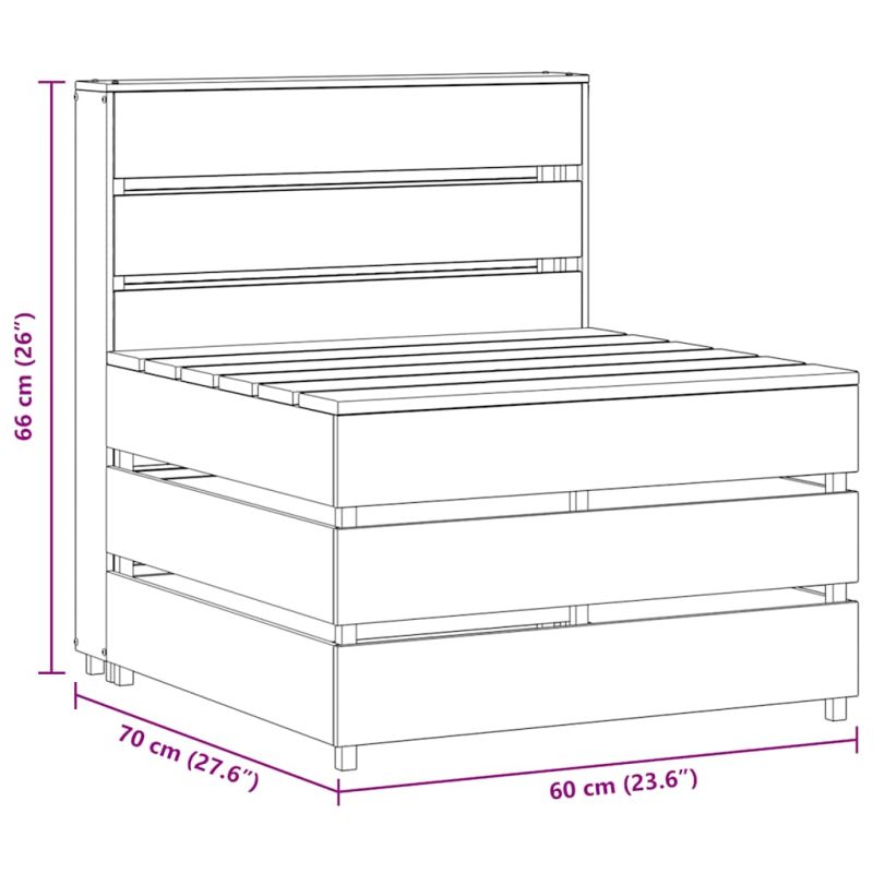 Отпуснете се и се насладете на вашето открито жилищно пространство с този среден палетен диван от импрегнирана борова дървесина! В комбинация с други мебели за сядане той предлага безкрайни варианти за конфигуриране, съобразени с вашите нужди и пространство. Средният диван е изработен от импрегнирана борова дървесина, която е устойчива на гниене и много издръжлива, което го прави изключително подходящ за използване на открито. Този външен диван има солидна конструкция и изисква малко поддръжка. Освен това този дървен среден диван се отличава с модулен дизайн, което го прави изключително функционален и лесен за местене, така че да отговаря на всякакви аранжировки. Можете да комбинирате различни модулни елементи, налични в падащото меню, за да създадете собствени конфигурации на градинска зона за отдих! Забележка: За да удължите живота на вашите градински мебели, ви препоръчваме да ги защитите с водоустойчиво покритие.