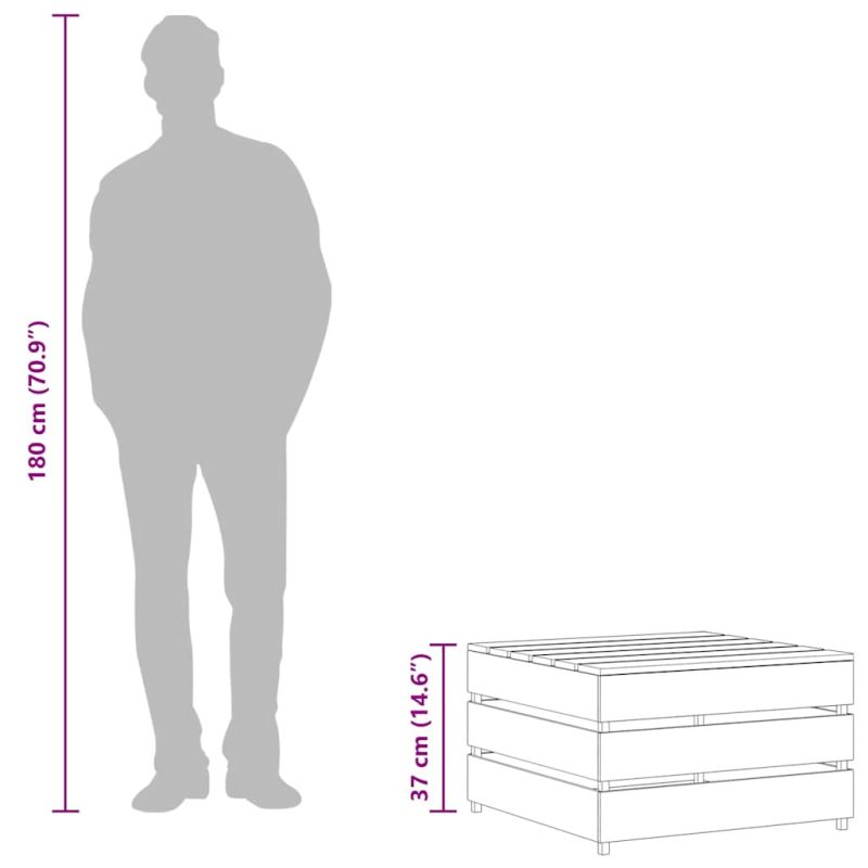 Насладете се на вашето открито жилищно пространство с тези градински палетни маси от импрегнирана борова дървесина! Масата е изработена от импрегнирана борова дървесина, която е устойчива на гниене и много издръжлива, което я прави изключително подходяща за използване на открито. Тази градинска маса е със солидна конструкция и не изисква особена поддръжка. Заедно с възглавници (не са включени в комплекта) тя може да служи като отоманка, осигурявайки максимален комфорт за вас и вашите гости. Освен това тази дървена маса се отличава и с модулен дизайн, което я прави напълно гъвкава и лесна за преместване, за да пасне на всяка обстановка. Можете да я комбинирате с други модулни сегменти, налични в падащото меню, за да създадете ваши собствени конфигурации на градинска лаундж гарнитура! Забележка: За да удължите живота на вашите градински мебели, препоръчваме ви да ги почиствате редовно и да не ги оставяте ненужно на открито без защита.Почистване: Използвайте мек сапунен разтворСъхраняване: Ако е възможно, съхранявайте на хладно и сухо място на закрито. Ако продуктът се съхранява на открито, защитете го с водоустойчиво покривало. Избършете и изсушете излишната вода или сняг от плоските повърхности след дъжд или снеговалеж. Позволете достатъчно циркулация на въздуха, за да избегнете повреди, свързани с влагата.