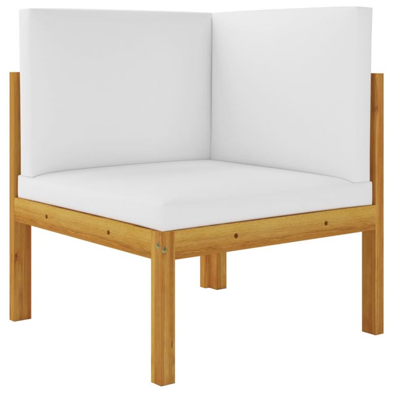Градински комплект с възглавници, 6 части, кремаво дърво, акация и въже