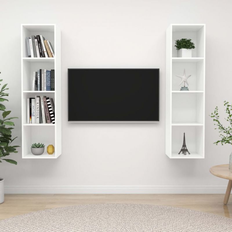 ТВ шкафове за стенен монтаж, 2 бр, бели, инженерно дърво