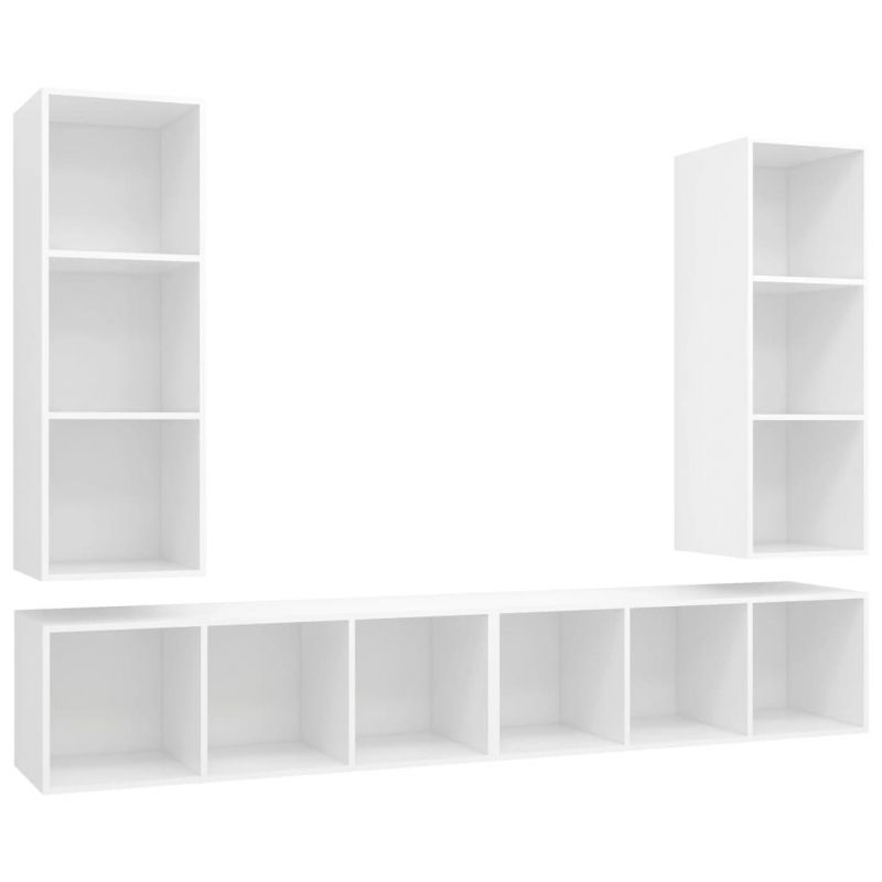 ТВ шкафове за стенен монтаж, 4 бр, бели, инженерно дърво