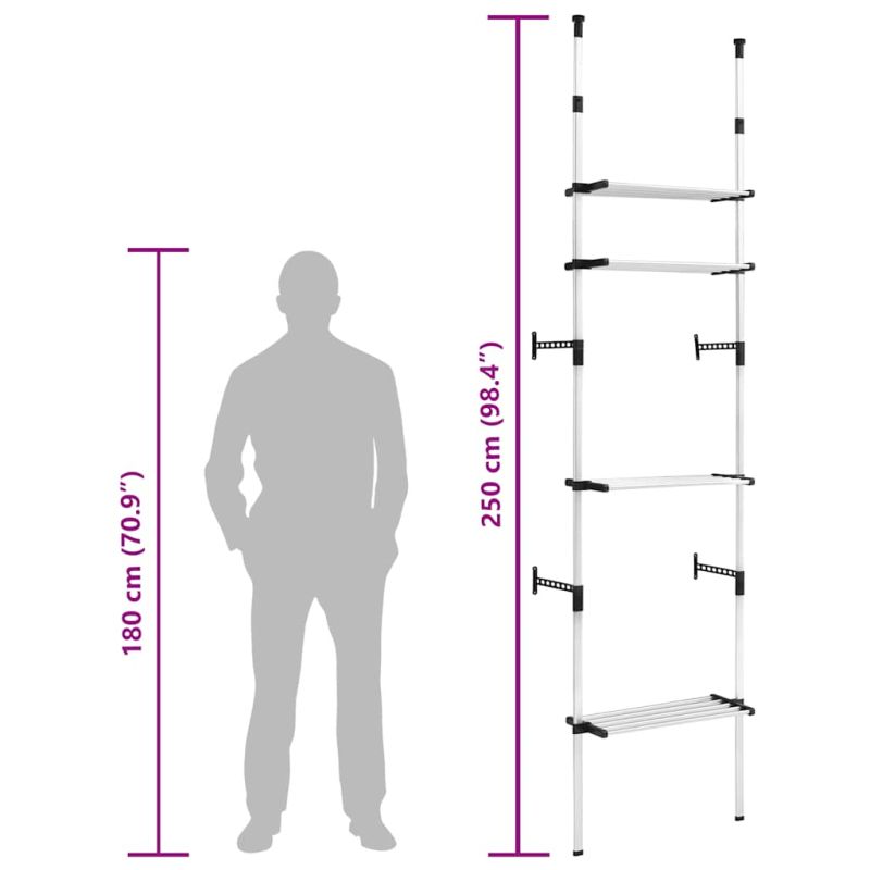 Нашата телескопична стойка за дрехи се отличава със семпъл дизайн, за да пести място във вашата спалня и всяка друга стая. Телескопичната система за гардероб е изработена от алуминий, което я прави здрава и стабилна. Тази етажерка за съхранение може да се нагоди към различни пространствени аранжировки, благодарение на телескопичната си система и регулируема височина. Тя представлява уникално и гениално средство за подреждане на вашата гардеробна. Организирайте дрехите си и поддържайте стаята подредена с нашата телескопична система за подреждане на гардеробната!