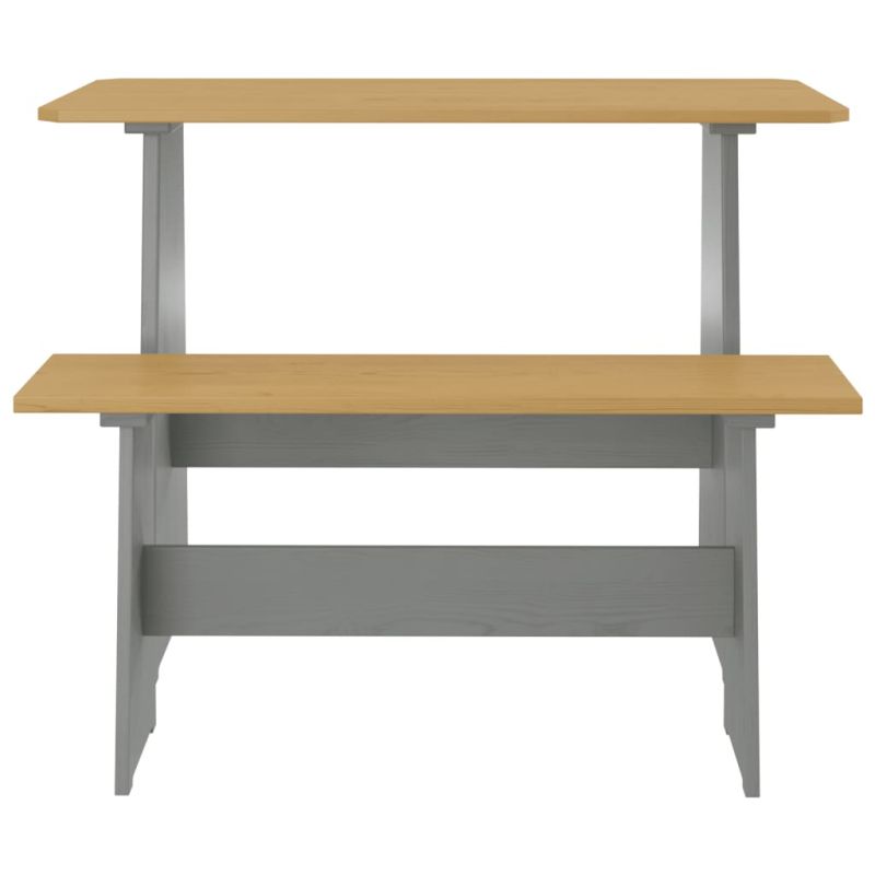 Трапезна маса с пейка REINE, меденокафяво и сиво, бор масив