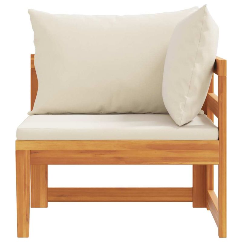 Насладете се на комфортно време за отдих във вашето външно пространство с приятелите или семейството си на този дървен ъглов диван! Този градински ъглов диван е изработен от масивна акациева дървесина – твърда дървесина с гъсти влакна. Този красиво проектиран градински ъглов диван е стабилен, издръжлив и впечатляващ. В допълнение, изящната изработка и красивите дървесни влакна правят всяка мебел малко по-различна от останалите. Освен това включените възглавници допринасят за допълнителния комфорт по време на почивка. Забележка: За да удължите живота на вашите градински мебели, препоръчваме ви да ги почиствате редовно и да не ги оставяте ненужно на открито без защита.Почистване: Използвайте мек сапунен разтвор.Съхранение: Ако е възможно, съхранявайте на хладно и сухо място на закрито. Ако продуктът се съхранява на открито, защитете го с водоустойчиво покривало. Избършете и изсушете излишната вода или сняг от плоските повърхности след дъжд или снеговалеж. Позволете достатъчно циркулация на въздуха, за да избегнете повреди, свързани с влагата.