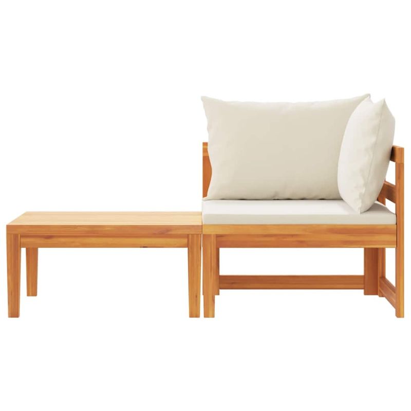 Градински лаундж комплект с кремави възглавници 2 части акация