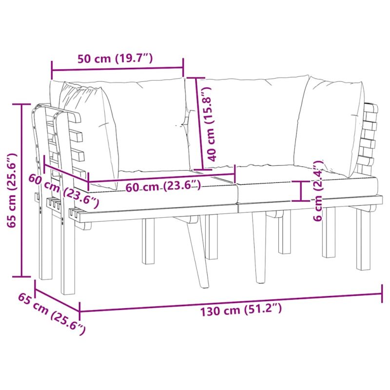 Този 2-местен дървен градински диван е отличен избор за релакс и наслада на времето, за дрямка или разговори със семейството или приятелите ви. С неостаряващ дизайн с ламели, диванът за отдих добавя нотка рустик чар към вътрешния ви двор, тераса или градина. Изработен от акациево дърво масив, градинският диван е устойчив на атмосферни влияния и много издръжлив. В комбинация с дебело подплатените възглавници този диван за вътрешен двор осигурява оптимален комфорт. Забележка: За да удължите живота на вашите градински мебели, препоръчваме ви да ги почиствате редовно и да не ги оставяте ненужно на открито без защита.Почистване: Използвайте мек сапунен разтвор.Съхранение: Ако е възможно, съхранявайте на хладно и сухо място на закрито. Ако продуктът се съхранява на открито, защитете го с водоустойчиво покривало. Избършете и изсушете излишната вода или сняг от плоските повърхности след дъжд или снеговалеж. Осигурете достатъчно циркулация на въздух, за да избегнете повреди, свързани с влагата.