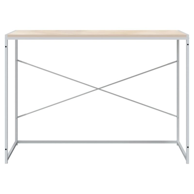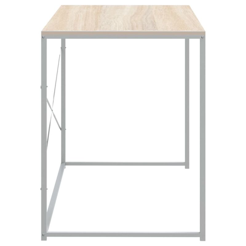 Компютърно бюро, бяло и дъб, 110x60x70 см, инженерно дърво