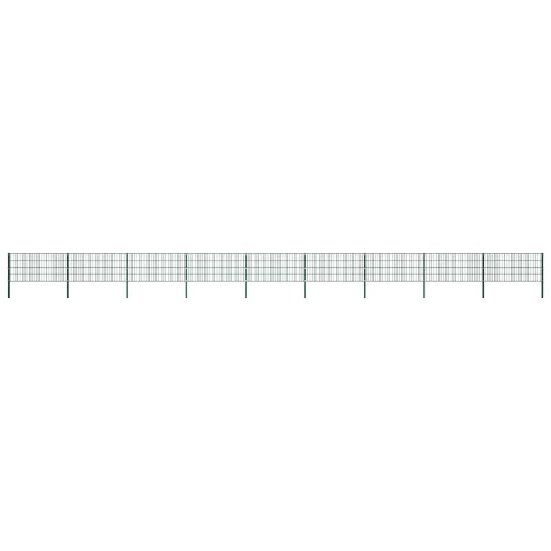 Ограден панел с железни стълбове 1557,5x80 см, зелен