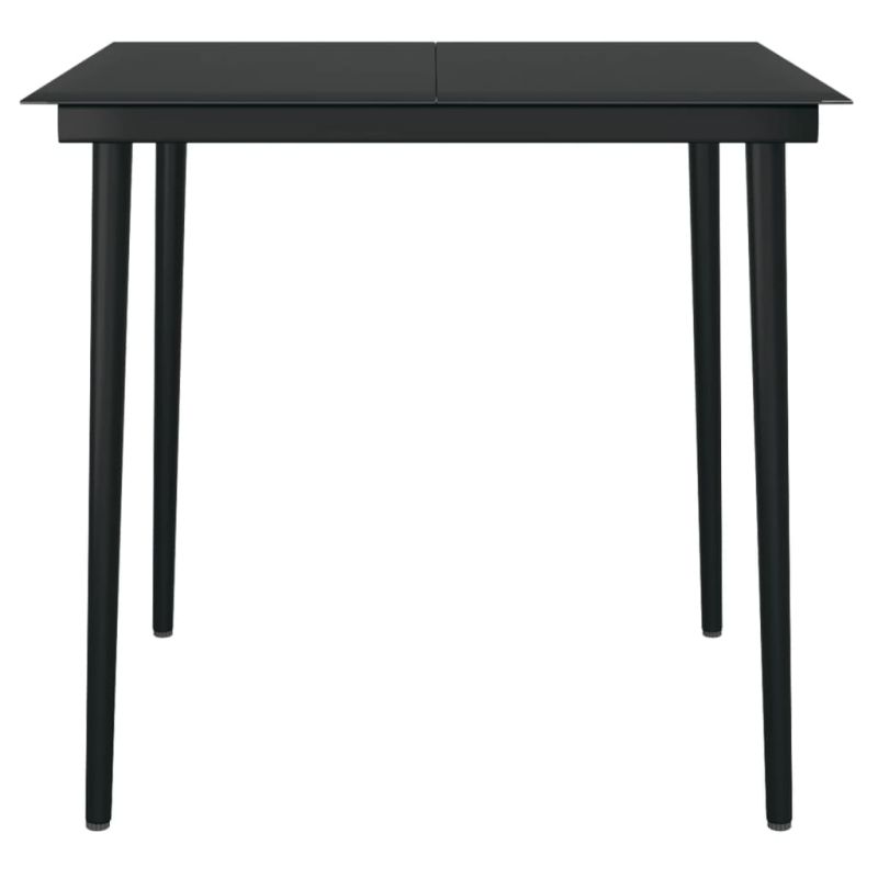 Градинска трапезна маса, черна, 80x80x74 см, стомана и стъкло