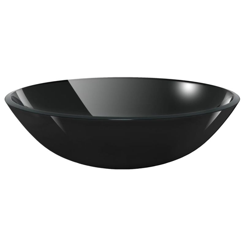 Мивка за баня с кран и сифон, черно закалено стъкло