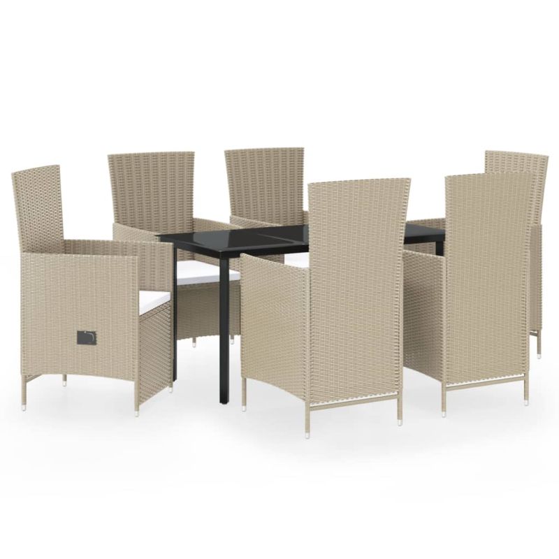 Градински трапезен комплект с възглавници, 7 части, бежов