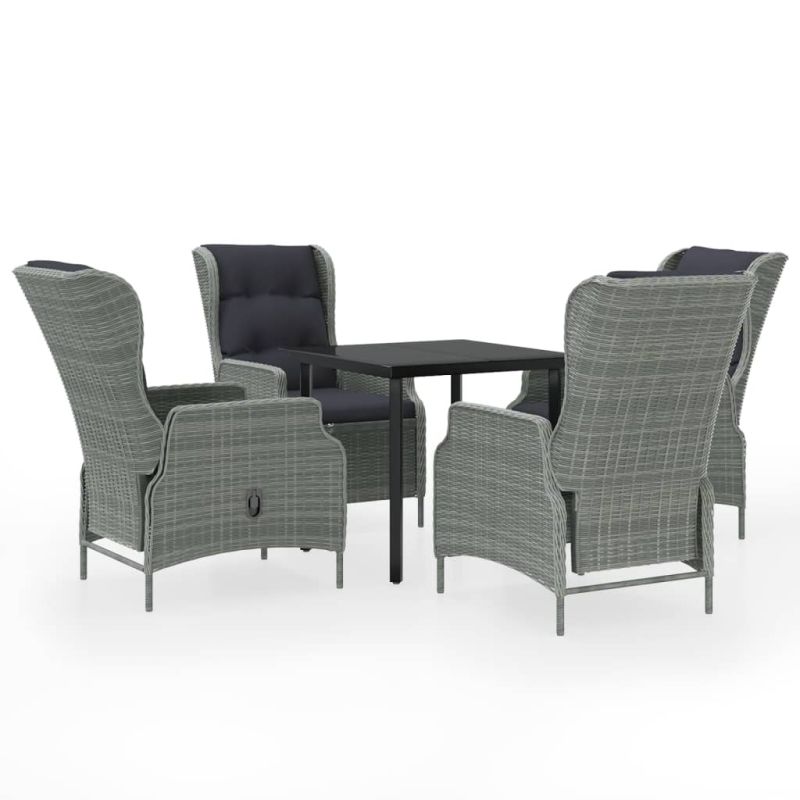 Насладете се на приятна вечеря или следобеден чай на открито с този градински трапезен комплект! Отличаващ се с елегантен дизайн, той ще се превърне във фокусна точка на вашата градина и вътрешен двор! Практичният градински трапезен комплект е със стоманена рамка, което го прави здрав и стабилен. Градинските накланящи се столове са изработени от водоустойчив PE ратан, който не изисква много поддръжка и ги прави идеални за употреба на открито. Дебело подплатените възглавници доставят допълнителен комфорт по време на хранене. Калъфката на възглавницата е снабдена с цип, който позволява тя да се сваля и пере. Благодарение на газовия повдигащ механизъм, облегалката също е регулируема, за да ви предостави комфорт във всяка позиция. С едно докосване на страничния бутон облегалката може да се накланя за по-удобна поза. Освен това гладкият стъклен плот се почиства лесно с влажна кърпа и е отличен за поставяне на храна, напитки и други декоративни предмети. Забележка: За да удължите живота на вашите градински мебели, препоръчваме ви да ги почиствате редовно и да не ги оставяте ненужно на открито без защита.Почистване: Използвайте мек сапунен разтвор.Съхраняване: Ако е възможно, съхранявайте на хладно и сухо място на закрито. Ако продуктът се съхранява на открито, защитете го с водоустойчиво покривало. Избършете и изсушете излишната вода или сняг от плоските повърхности след дъжд или снеговалеж. Позволете достатъчно циркулация на въздуха, за да избегнете повреди, свързани с влагата. Максимално 110 кг на седалка. Съобразете се с риска от открит огън и други източници на силна топлина в близост до продукта.