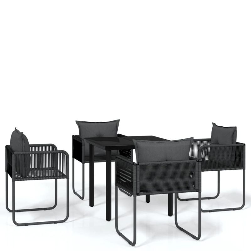 Създайте завладяваща и сплотена естетика във вашето външно пространство с този градински трапезен комплект! Този градински трапезен комплект е изработен от прахово боядисана стоманена рамка, което го прави здрав и стабилен за ежедневна употреба на открито. Гладкият стъклен плот се почиства лесно с влажна кърпа и е идеален за поставяне на ястия, напитки и различни декоративни предмети. Патио столовете са изработени от PE ратан, което ги прави леки и водоустойчиви. Освен това възглавниците за гърба осигуряват максимален комфорт за облягане по време на вашия релакс. Забележка: Препоръчваме да покривате комплекта мебели при дъжд, сняг и слана. Забележка: За да удължите живота на вашите градински мебели, ви препоръчваме да ги защитите с водоустойчиво покритие.