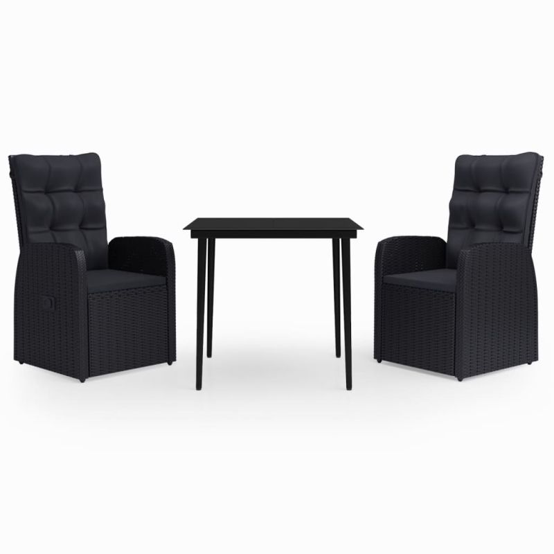 Градински трапезен комплект от 3 части с възглавници черен