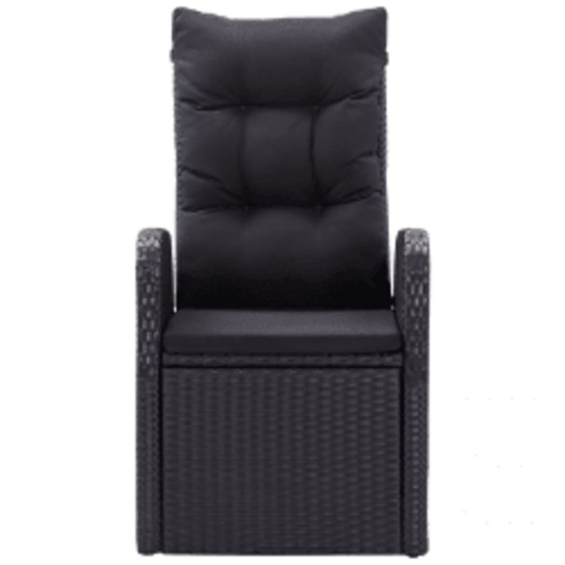 Този стилен градински трапезен комплект е предназначен да бъде фокусната точка на вашата градина или вътрешен двор! Той е чудесен избор за хранене на открито или за почивка на открито! Прахово боядисаните стоманени рамки правят масата и столовете здрави и стабилни за ежедневна употреба на открито. Благодарение на водоустойчивия PE ратан, столовете са лесни за почистване и издръжливи. Облегалката се накланя чрез издърпване на бутона отстрани. Благодарение на олекотената конструкция, те са лесни за преместване. Дебело подплатените възглавници на седалките също добавят допълнителен комфорт. Полиестерните калъфки не се нуждаят от много поддръжка и могат да се свалят и перат. Освен това, гладкият стъклен плот се почиства лесно с влажна кърпа и е идеален за поставяне на ястия, напитки и различни декоративни предмети. Забележка: За да удължите живота на вашите градински мебели, ви препоръчваме да ги защитите с водоустойчиво покритие.