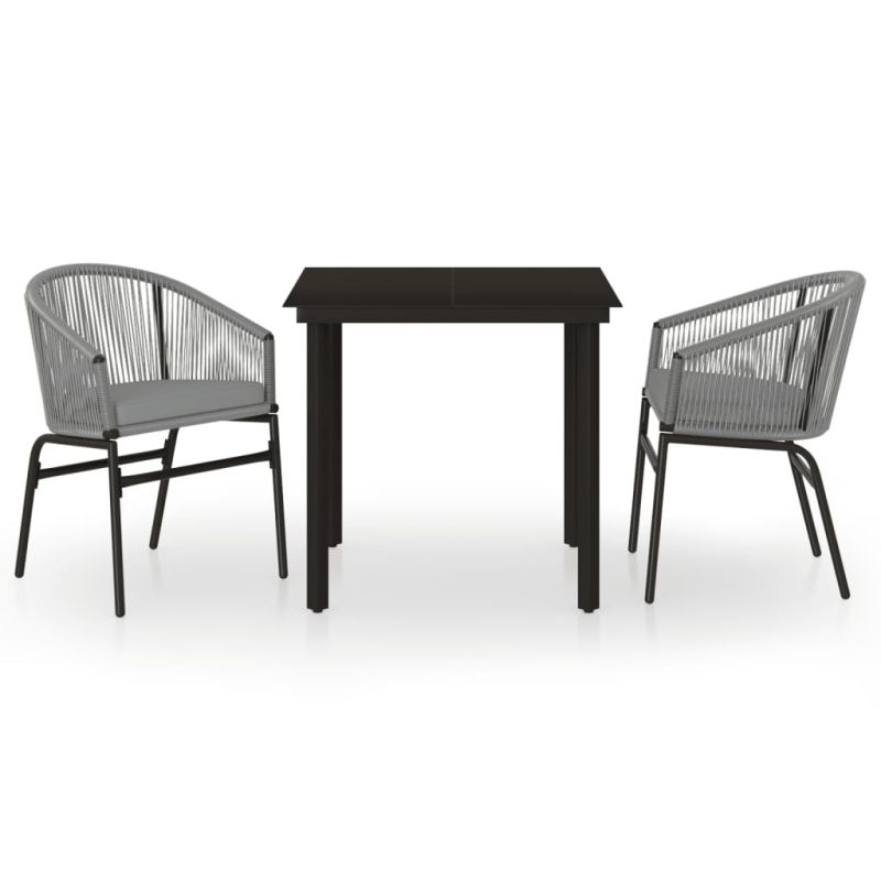 Създайте завладяваща и сплотена естетика във вашето външно пространство с този градински трапезен комплект! Този градински трапезен комплект е изработен от прахово боядисана стоманена рамка, което го прави здрав и стабилен за ежедневна употреба на открито. Гладкият стъклен плот се почиства лесно с влажна кърпа и е идеален за поставяне на ястия, напитки и различни декоративни предмети. Патио столовете са изработени от PVC ратан, което ги прави издръжливи и устойчиви на лошо време и UV лъчи. Освен това всяка седалка е снабдена с подвижна дебело подплатена възглавница за допълнителен комфорт по време на излежаване. Забележка: За да удължите живота на вашите градински мебели, ви препоръчваме да ги защитите с водоустойчиво покритие.