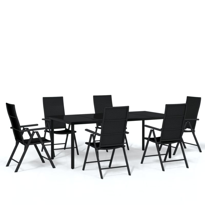 Създайте завладяваща и сплотена естетика във вашето външно пространство с този градински трапезен комплект! Тази градинска трапезна маса е изработена от прахово боядисана стоманена рамка, което я прави здрава и стабилна за ежедневна употреба на открито. Гладкият стъклен плот се почиства лесно с влажна кърпа и е идеален за поставяне на ястия, напитки и различни декоративни предмети. Патио столовете са изработени от PE ратан, което ги прави леки и водоустойчиви. Освен това облегалките на столовете са със 7 настройки за наклон, така че винаги можете да намерите най-удобната позиция за сядане. Столовете могат да се сгъват, за да се спести място, когато не се използват. Забележка: Препоръчваме да покривате комплекта мебели при дъжд, сняг и слана. Забележка: За да удължите живота на вашите градински мебели, ви препоръчваме да ги защитите с водоустойчиво покритие.