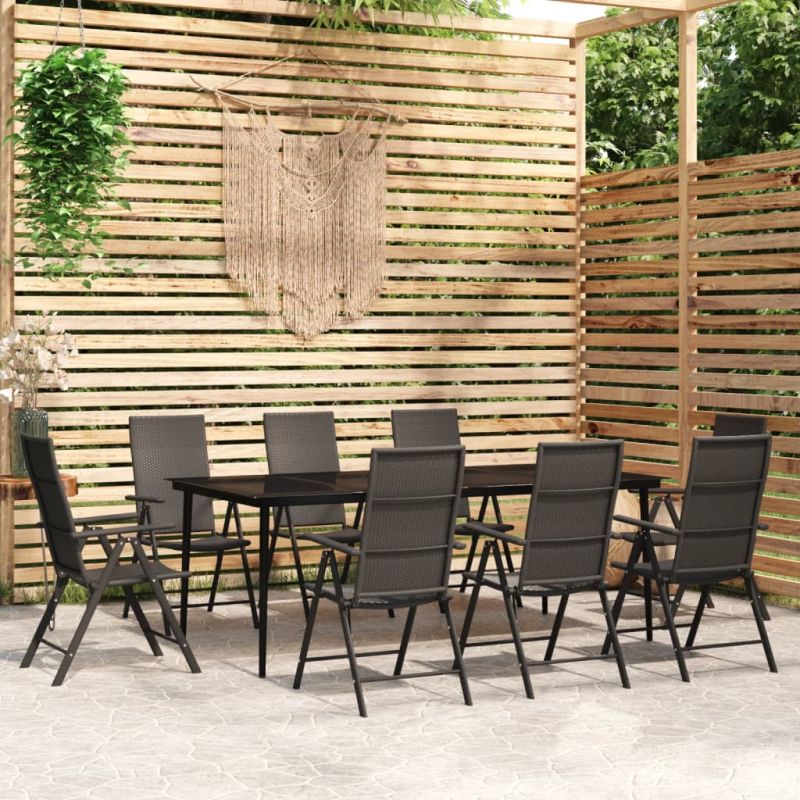 Градински трапезен комплект, 9 части, черен