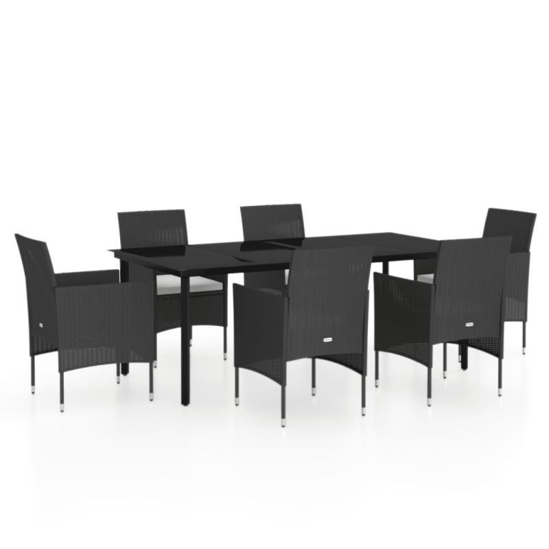 Градински трапезен комплект с възглавници 7 части черен