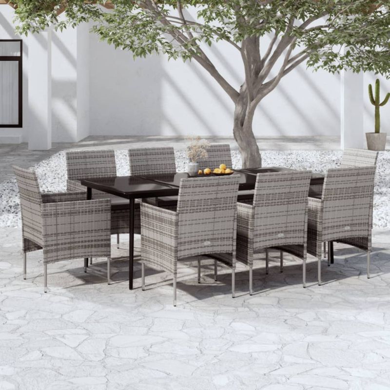 Градински трапезен комплект 9 части с възглавници сиво и черно