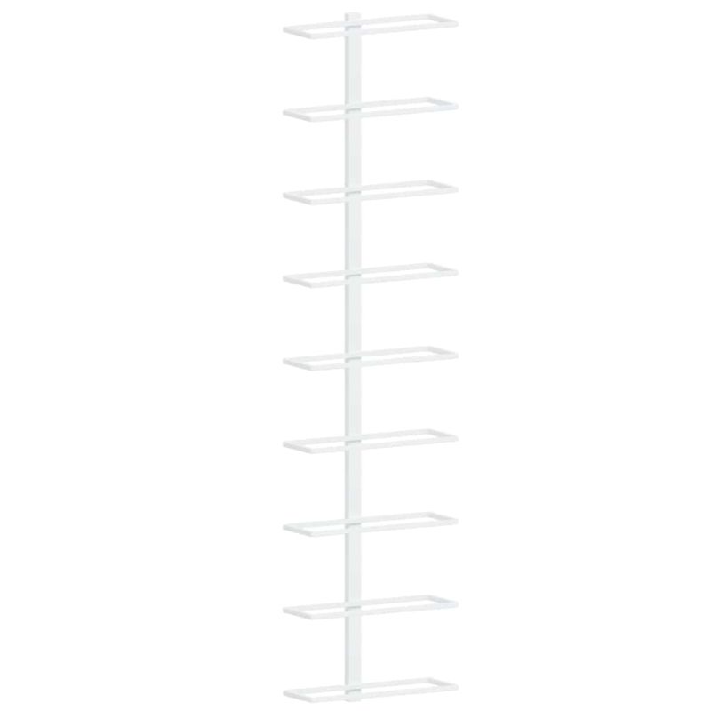 Стойки за вино за 9 бутилки, стенен монтаж, 2 бр, бели, желязо