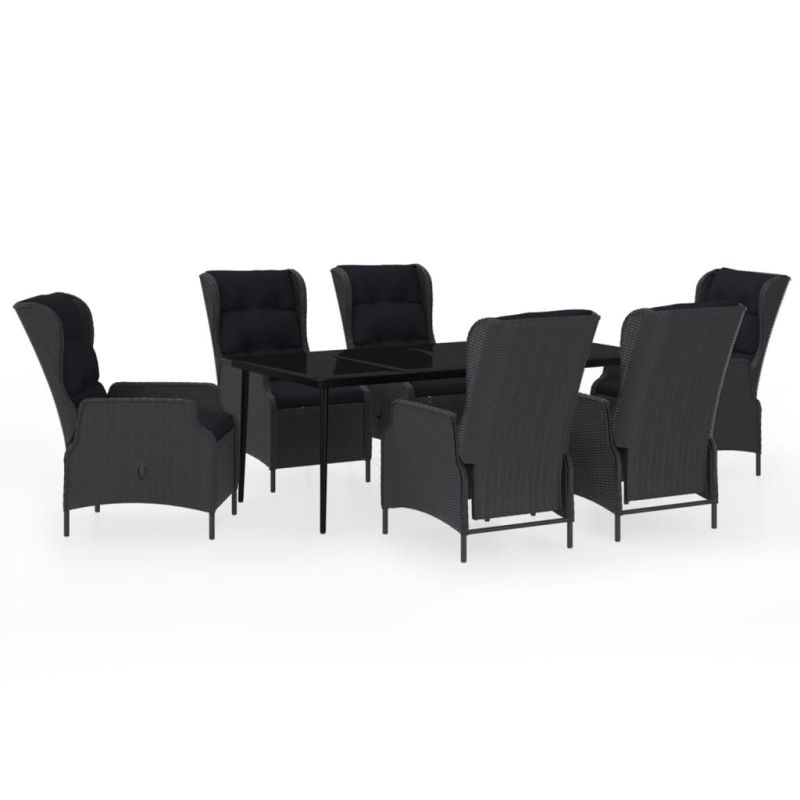 Насладете се на хубава храна или следобеден чай във вашето открито пространство с този градински трапезен комплект! Отличаващ се с елегантен дизайн, той ще се превърне във фокусната точка на вашата градина и вътрешен двор! Практичният трапезен комплект за открито има стоманена рамка, което го прави здрав и устойчив. Градинските наклоняеми столове са изработени от водоустойчив и не изискващ поддръжка PE ратан, което ги прави идеални за употреба на открито. Плътно подплатените възглавници осигуряват допълнителен комфорт по време на хранене. Калъфката на възглавницата е снабдена с цип, може да се сваля и пере. Благодарение на газовия повдигащ механизъм облегалката също може да се регулира, за да се нагоди към вашите пози. С докосване на бутона отстрани облегалката може да се накланя за удобна позиция. В допълнение, гладкият стъклен плот се почиства лесно с влажна кърпа и е идеален за поставяне на ястия, напитки и други декоративни елементи. Забележка: За да удължите живота на вашите градински мебели, ви препоръчваме да ги защитите с водоустойчиво покритие.